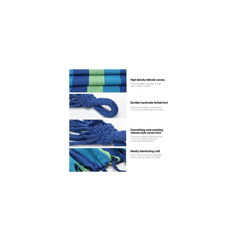 Fácil de fijar, sólo fijar la hamaca con 2 cuerdas de unión y atar las cuerdas a los árboles o postes.