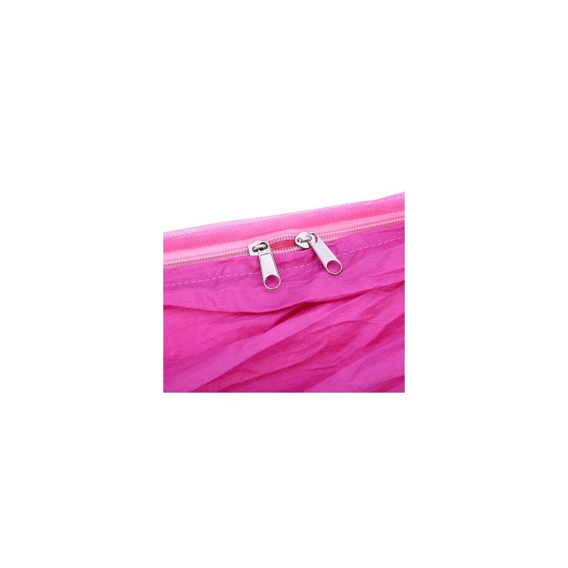 a continuación, este portátil paracaídas Tela Mosquitera hamaca puedesatisfacerte.La hamaca está hecha de tela de paracaídas, que es fuerte, resistente y transpirable.Se sujeta con una bolsa de cordón ideal para hacer la hamaca fácil de llevar y usar.La hamaca puede ser doblado en la bolsa que está unido a un lado de la hamaca cuando no esté en uso.Lo que es más, la hamaca está equipada con mosquitero, usted nunca tendrá que preocuparse por morder por los mosquitos u otros insectos