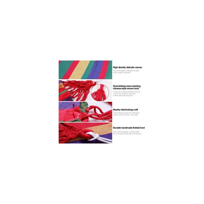 Fácil de fijar, sólo fijar la hamaca con 2 cuerdas de unión y atar las cuerdas a los árboles o postes.