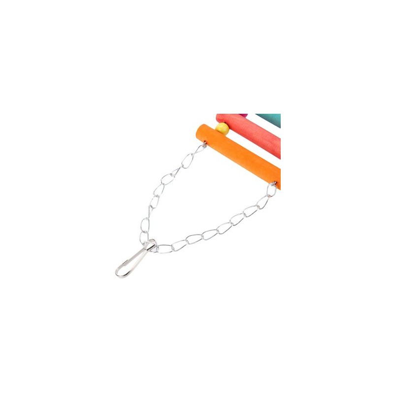 Peso del paquete: 0,117 kg Tamaño del paquete (L x A x A): 19,00 x 14,50 x 1,50 cm / 7,48 x 5,71 x 0,59 pulgadas Contenido del paquete: 1 x Puente Colgante de Pájaro Beaded Swing Cage Hammock de madera