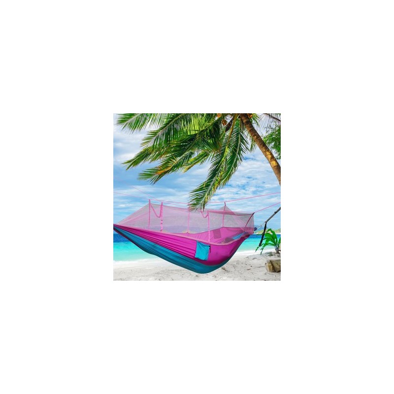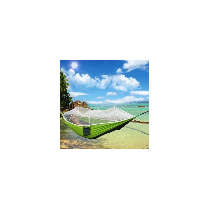 Entonces este Portable Paracaídas tela Mosquito Net Hamaca puede satisfacer con usted. La hamaca es de tela de paracaídas, que es fuerte, durable y transpirable. Se adjunta con una bolsa de cordón ideal para hacer la hamaca fácil de llevar y usar. La hamaca puede plegarse en la bolsa que está unida al lado de la hamaca cuando no está en uso. Lo que es más, la hamaca está equipada con mosquitero, nunca se preocupará por morder por los mosquitos u otros insectos.