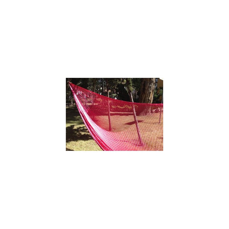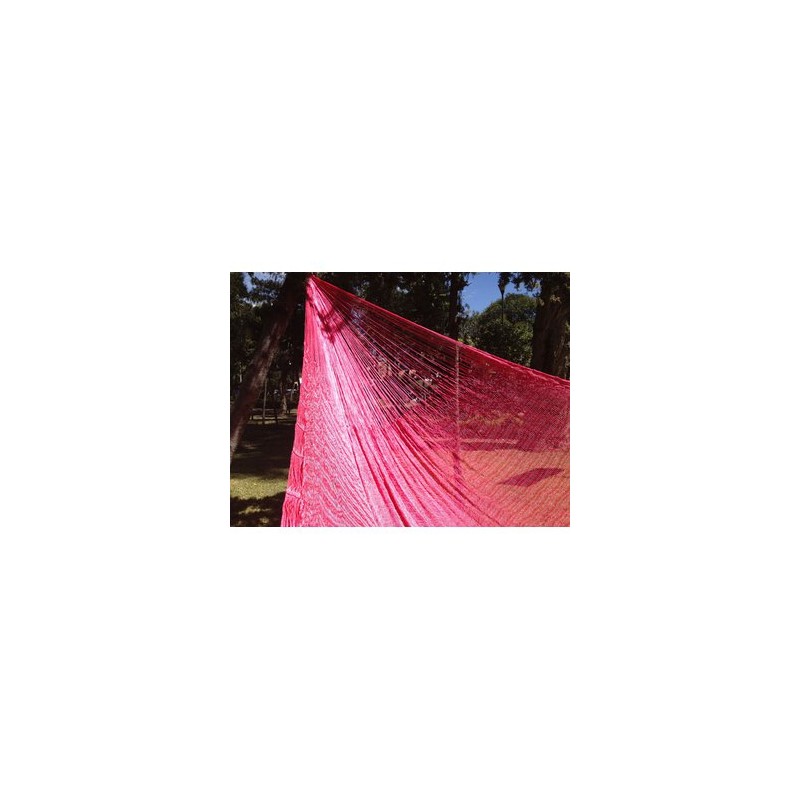 Color: Rosa (Toda la hamaca es de color rosa incluyendo los brazos)Material: La hamaca está tejida con hilo de nylon grueso.Medidas: Largo total 4Mts Ancho 2.3MtsCapacidad: 300Kgs Peso Unitario: 3Kgs Apta para dos personas.