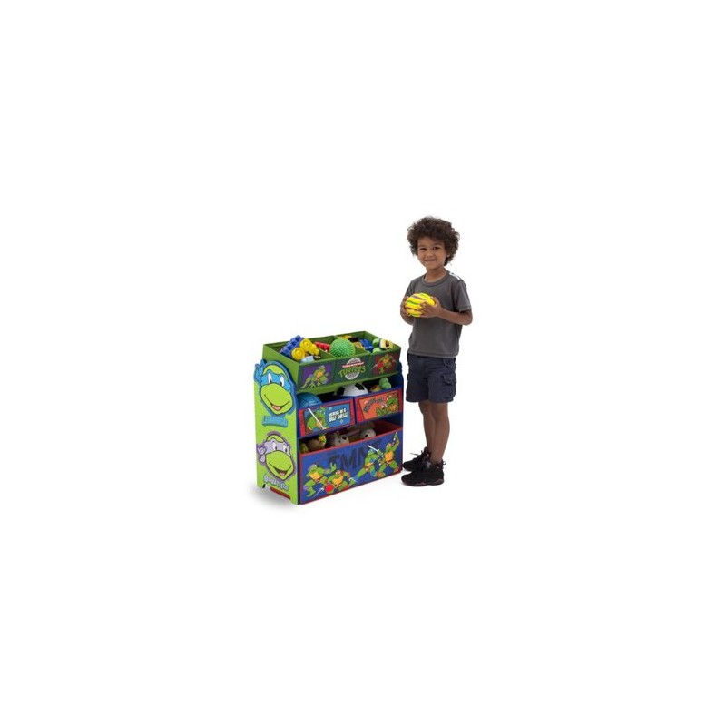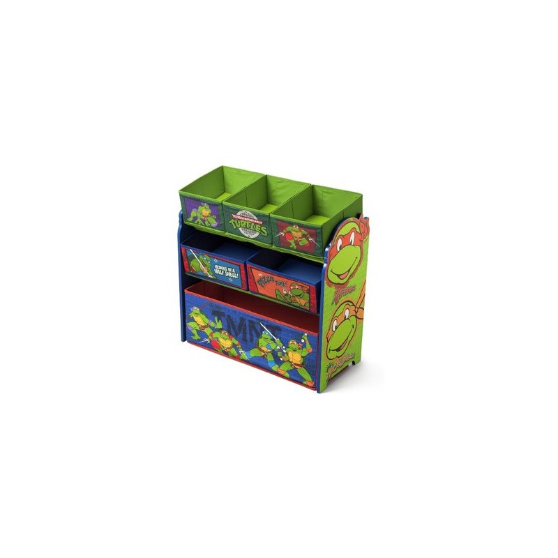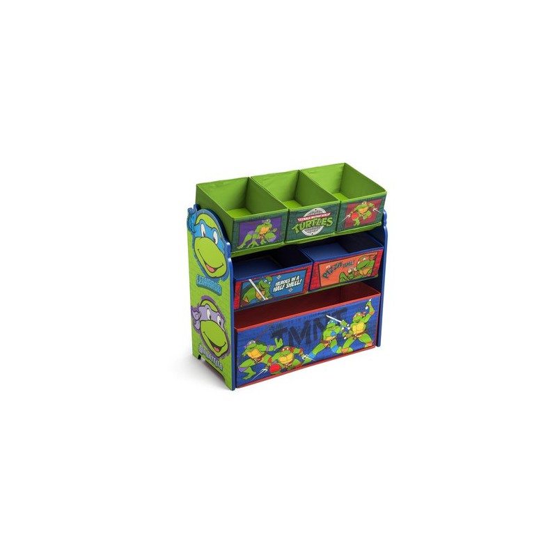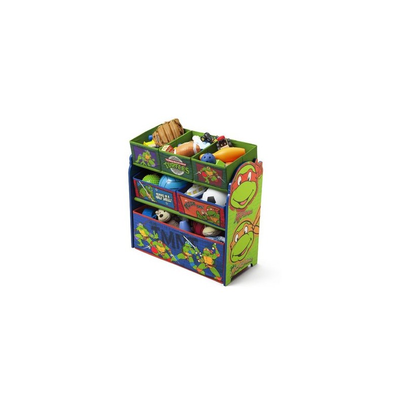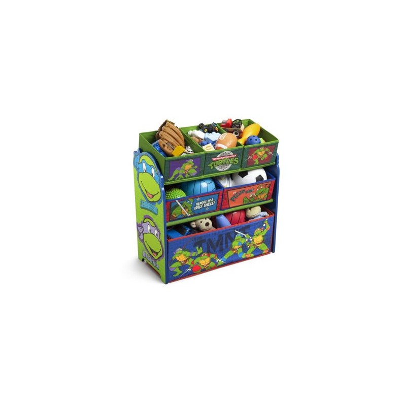 Organizador del Delta Infantil! Con seis contenedores de tela de tamaño único apoyo de un marco robusto, ha terminado con coloridas ilustraciones de tortugas favoritas de su niño, Leonardo, Rafael, Donatello y Miguel Ángel.