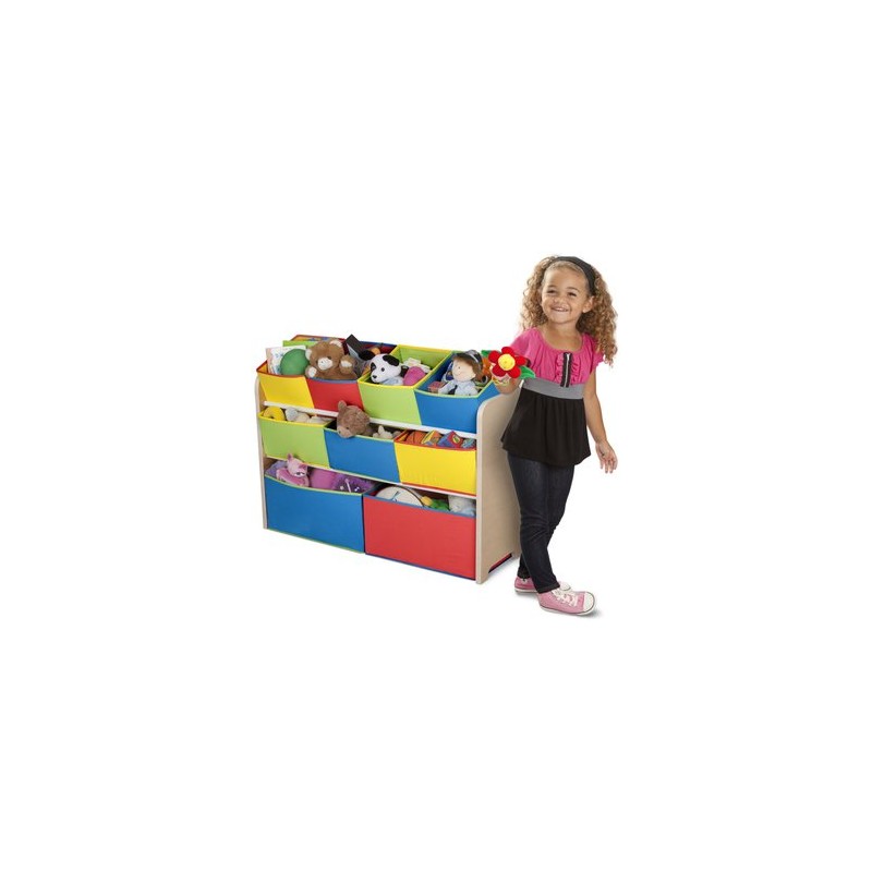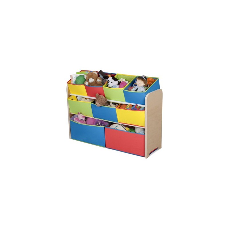 Construcción de madera resistente con acabado natural El Delta del juguete Organizador incluye cuatro contenedores de tamaño regular y tres contenedores de tamaño dobles y 2 contenedores extra grandes Los contenedores robustos son removibles Medidas: 12 "D x 36" W x 24 "H Fácil montaje