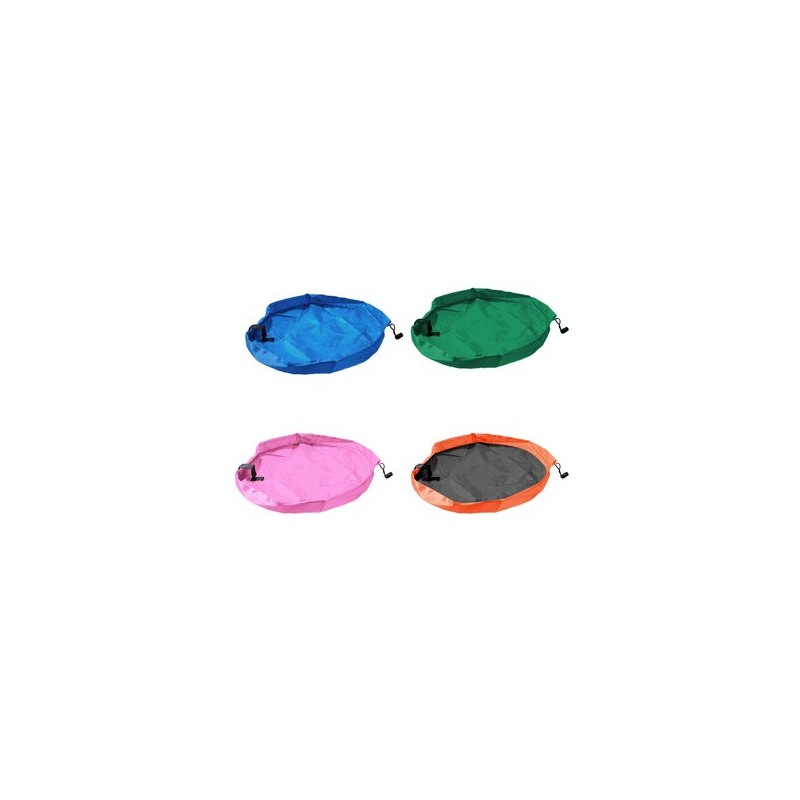 With a quick pull of the string the mat turns into bag.