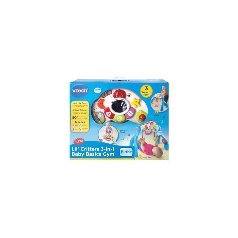 Critters El Lil 3-en-1 Cuna Fundamentos Gimnasio por VTech tiene tres formas de jugar y crece con su hijo. Mira a tu pequeño conseguir un entrenamiento a medida que agarrar a los animales que cuelgan en el gimnasio bebé. A medida que crecen, los cambios de gimnasia en un panel de actividad baja y un andador con divertidos efectos de sonido y música.