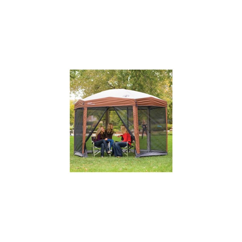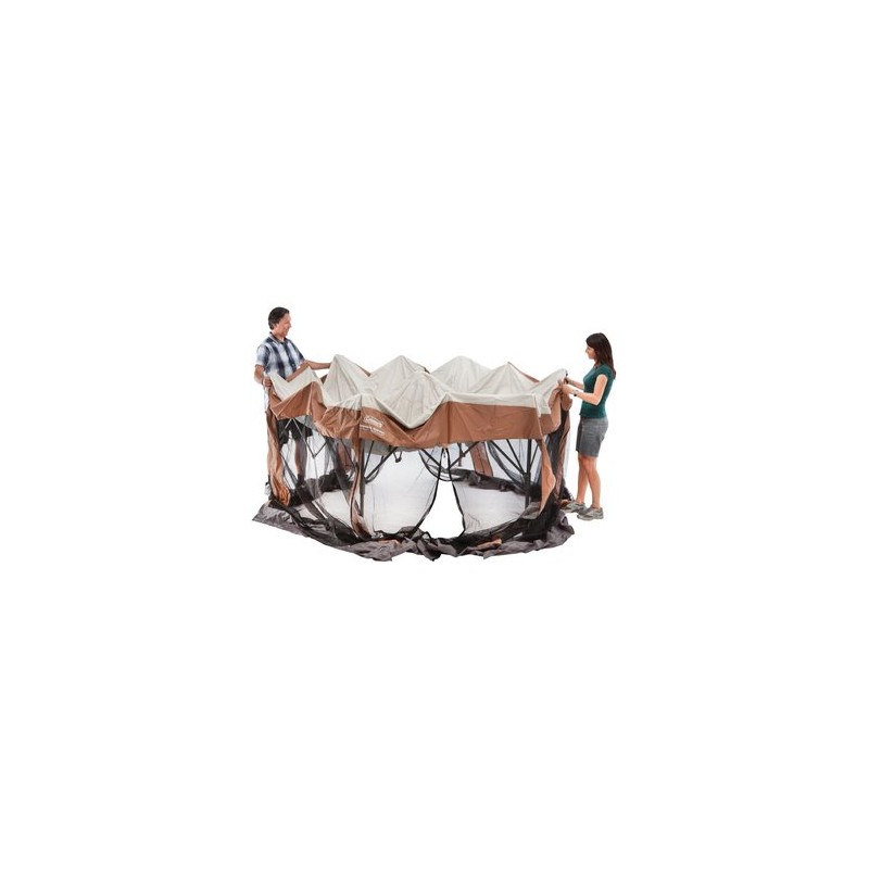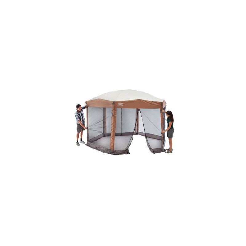 entrada de la parte posterior y frontal Sistema que ayuda a mantener las puertas abiertas, cremalleras para mantenerlos cerrados Techo abovedado da más espacio para las personas más altas UVGuard (TM) la tecnología ayuda a bloquear los rayos dañinos del solForma hexagonal Postes de patas para facilitar la fijación y estabilización con estacas de aceroBolsa de transporte con ruedas